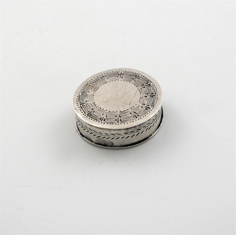 A George III engraved circular patch box and cover, maker's mark only "I S", unascribed circa 1800, 1in (2.5cm)
