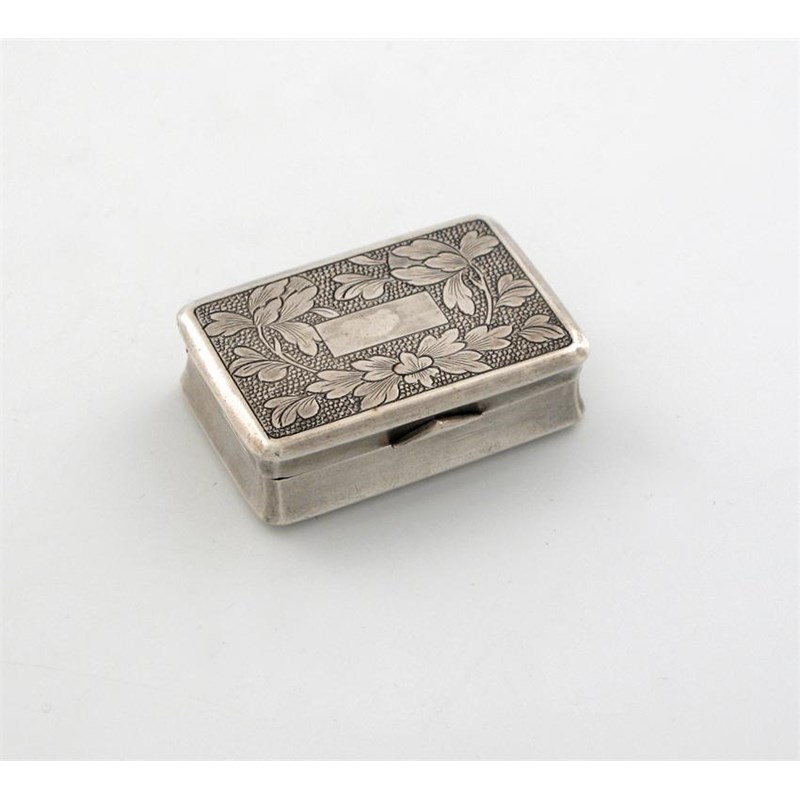 A Mid 19th century Chinese snuff box, the lid leafage engraved on a matt ground. 1.6in (6.2cm).