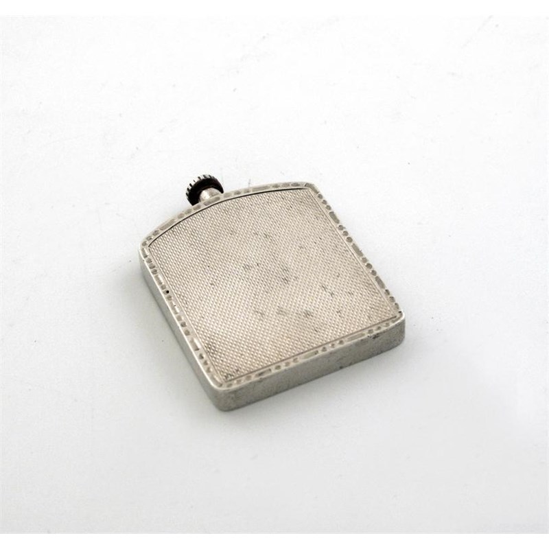 A scent bottle, in the form of a car radiator, engine-turned, the screw on cover with a long applier, Birmingham 1935, 1.8in (4.6cm)