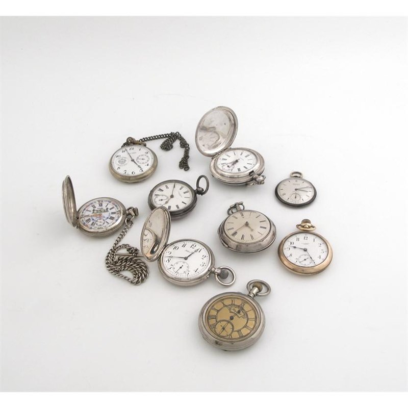 Nine various pocket watches, three engine turned examples, a gold plated example, a gold plated 'veri-thin' Gruen, three other plated examples (one with a coloured dial), and a George III pair cased verge watch, the case hallmarked 1795. (9)