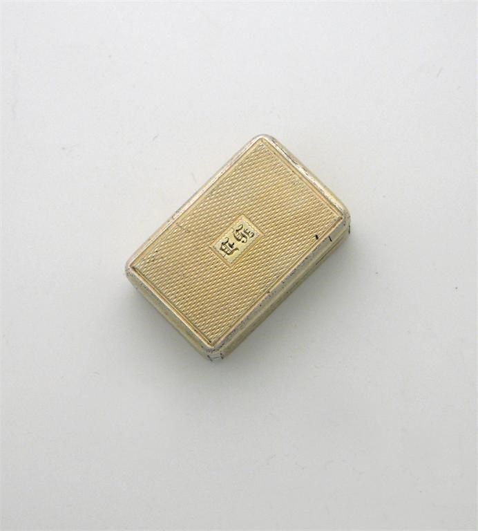 A George III silver gilt pill box, engine-turned, with initials H D, by John Linnit, London 1819, 1.5in (3.8cm)