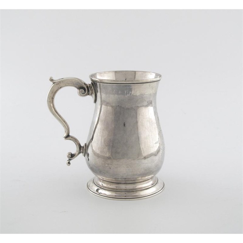 An early George III baluster mug, with a double scroll handle, engraved with large initials, by Samuel Wheat, London 1762, 4.9in (12.2cm) high, 10oz.