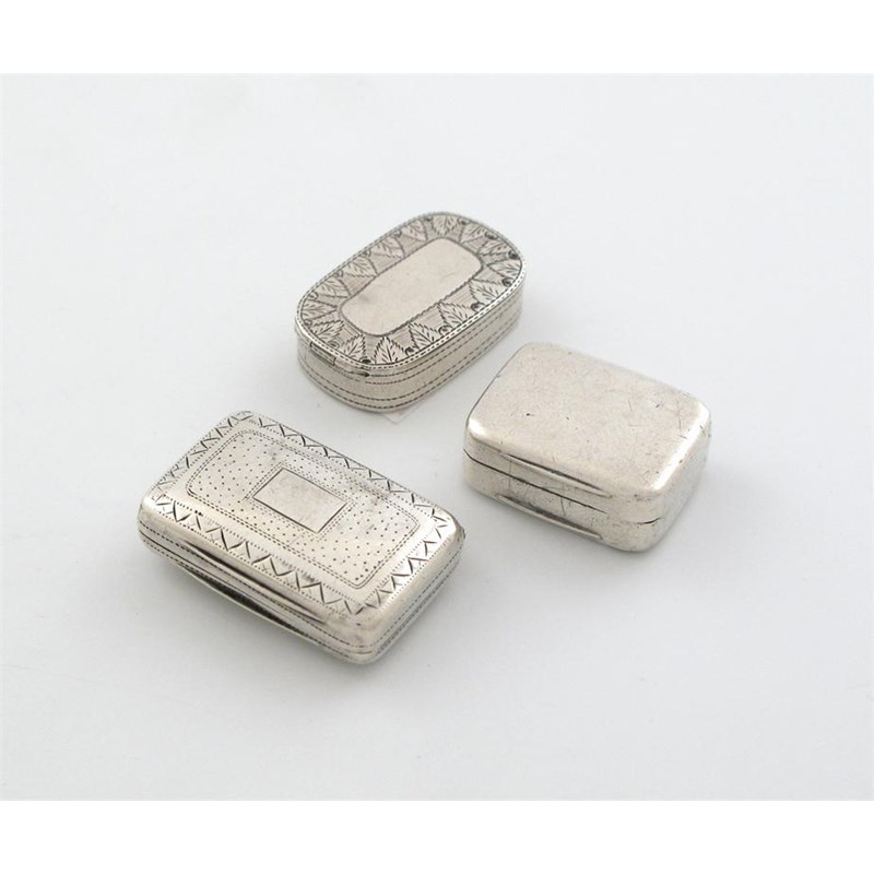 Two George III vinaigrettes, Birmingham 1804 and 1809 and an engraved patch box by Joseph Taylor, Birmingham 1807 (3)