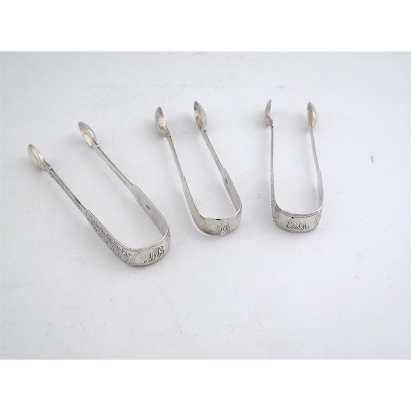 Channel Isles: three pairs of fiddle pattern sugar tongs