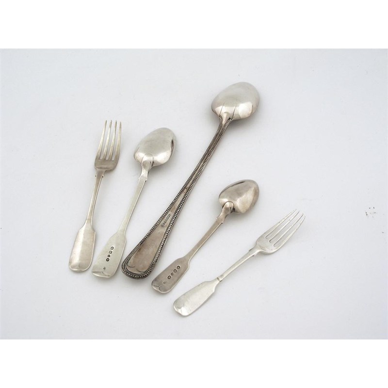A set of five Victorian fiddle tableforks