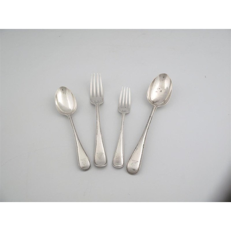 A set of Victorian bead edge flatware, crested, comprising 6 table spoons, 12 table fork, 10 dessert spoons, 12 dessert forks, 10 teaspoons, by George Adams, London 1867 (5 teaspoons 1878), 94oz. (50)