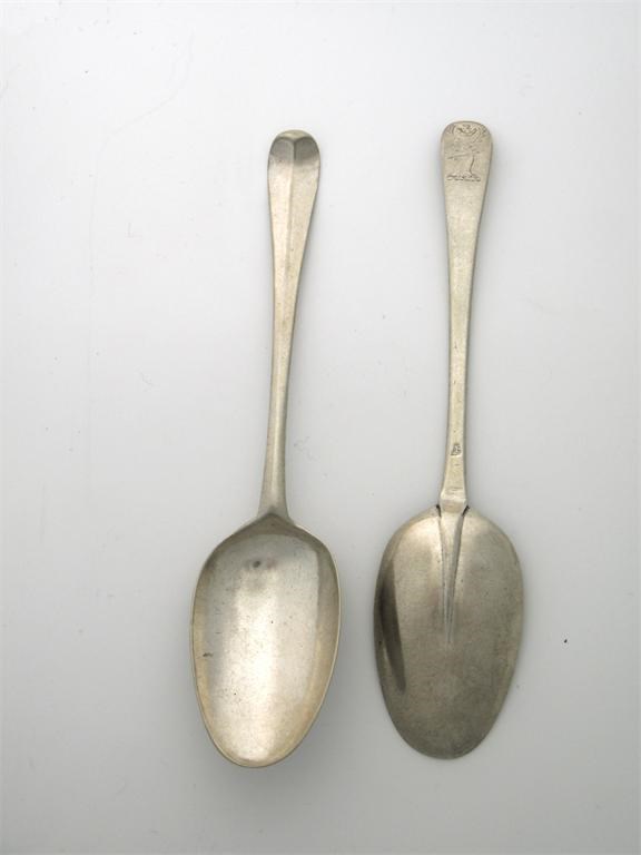 A pair of George I Hanoverian dessert spoons with plain moulded rattails
