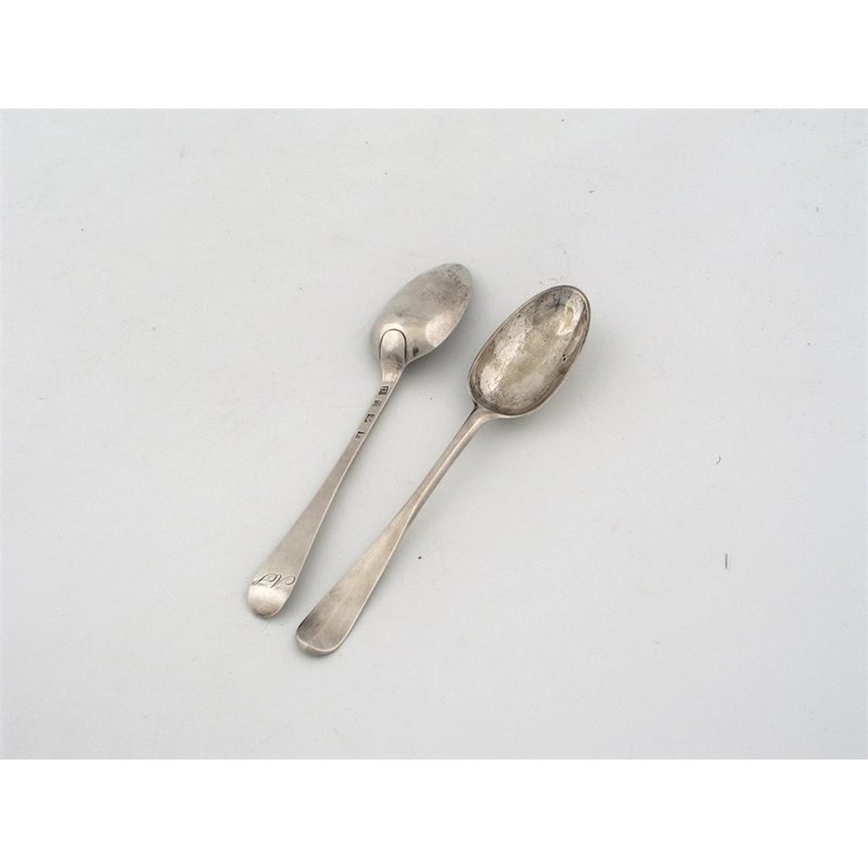 A pair of George III Scottish tablespoons, Hanoverian pattern, initialled 'AS', possibly by John Edmonston, Edinburgh 1771, 4.5oz. (2)