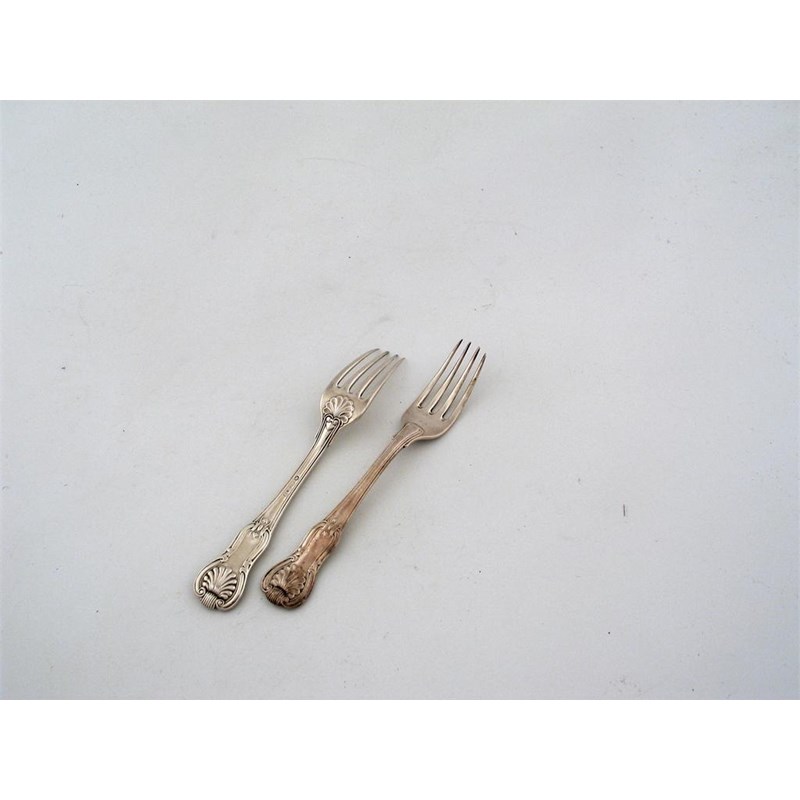 By Paul Storr: a matched set of 14 George III hourglass pattern tableforks