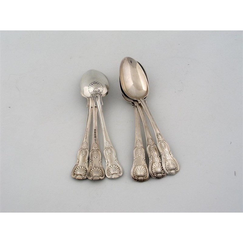 Royal Association: a matched set of 6 George III/IV Kings pattern tablespoons, with the Royal garter insignia, three by Paul Storr, London 1820; three by William Chawner, London 1822, 19.5oz. (6)
