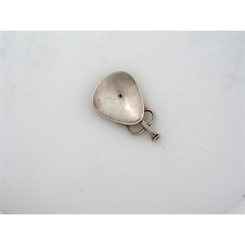 A 'hammered' caddy spoon, with a rounded triangular bowl and an openwork stem, with a knop finial, by A.E.Jones, Bimringham 1924.