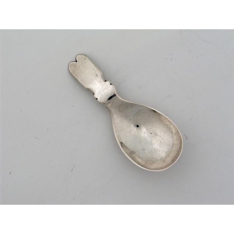 A George III plain caddy spoon, with a shaped stem, by Thomas James, London 1810.