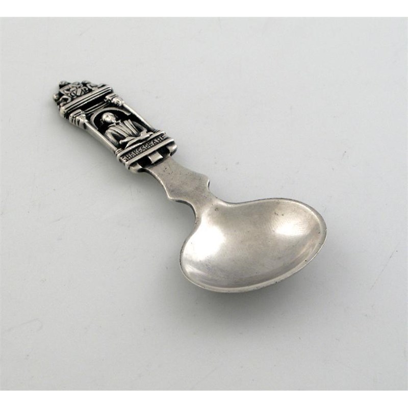 A modern cast caddy spoon, the terminal with a niche depicting the demi figure of 'SAHKESPEARE', maker 'R.C', Birmingham 1913, 1oz.
