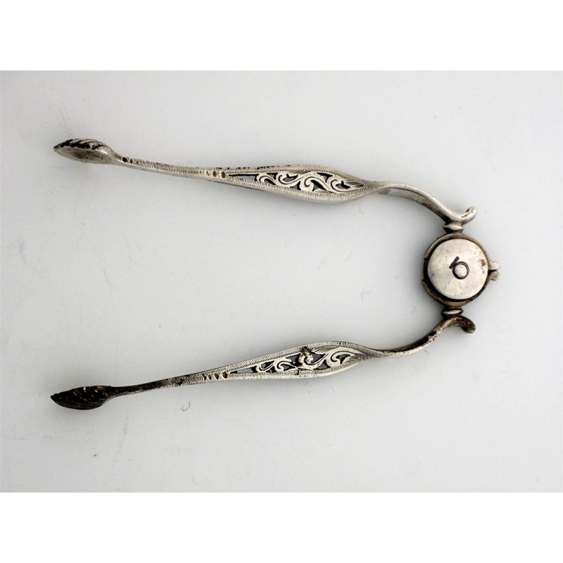 A pair of Victorian pierced sugar tongs, with a 'spring' disc pivot, by Francis Higgins, London 1890, 3.75in (9.5cm) long, 0.6oz