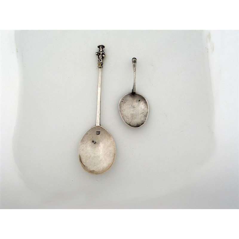 A rare James I sugar spoon, the short curved handle with hoof terminal, by William Friend, maker's mark only, struck on the back of the bowl, London circa 1615-1620, 3.9in (10cm)