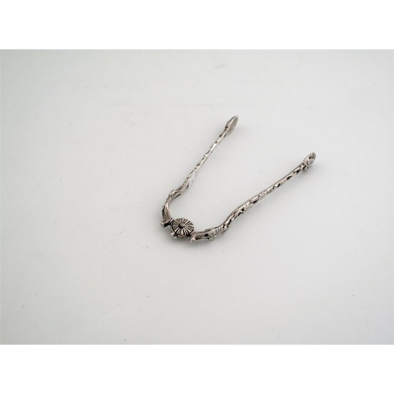 An unusual cast pair of Victorian sugar tongs, pierced vine pattern, with a 'sprung' pivot, by George Adams, London 1854, 2oz.