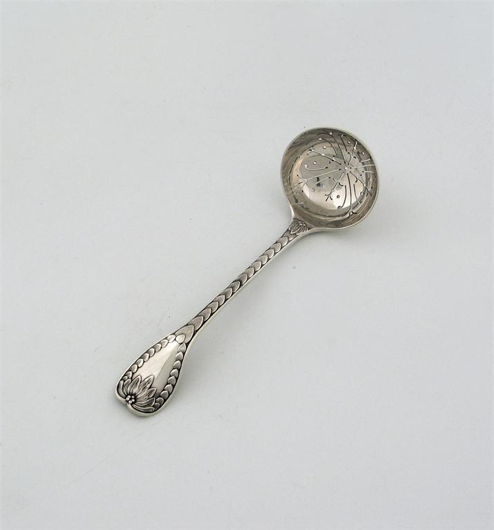 A Victorian palm pattern sugar sifter ladle, by George Adams, London 1868, 2.5oz.