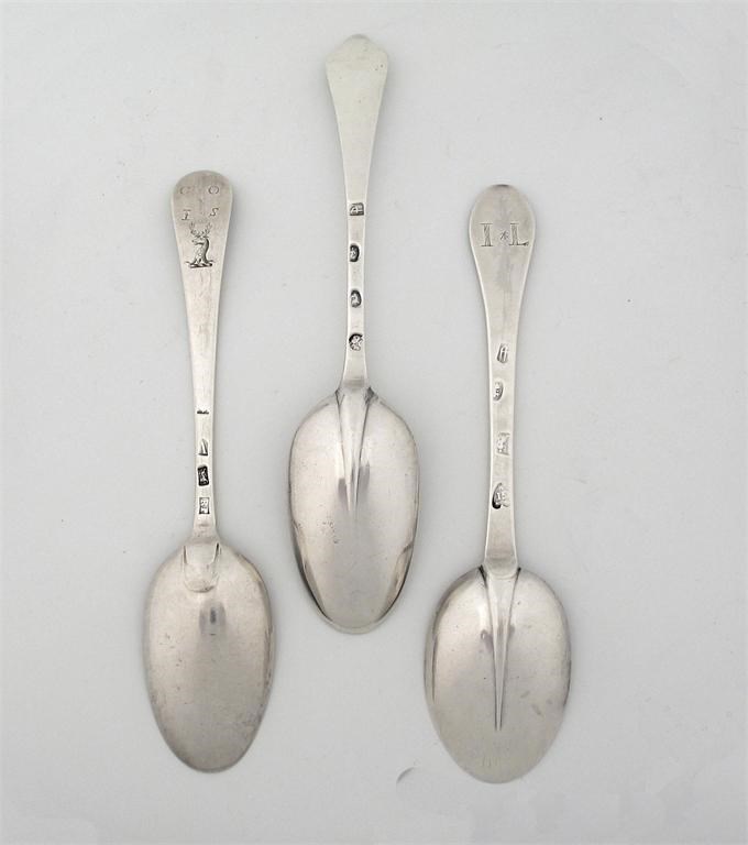 A Queen Anne dog nose spoon, with plain rattail, by William Petley, London 1714, 8in (20.2cm).