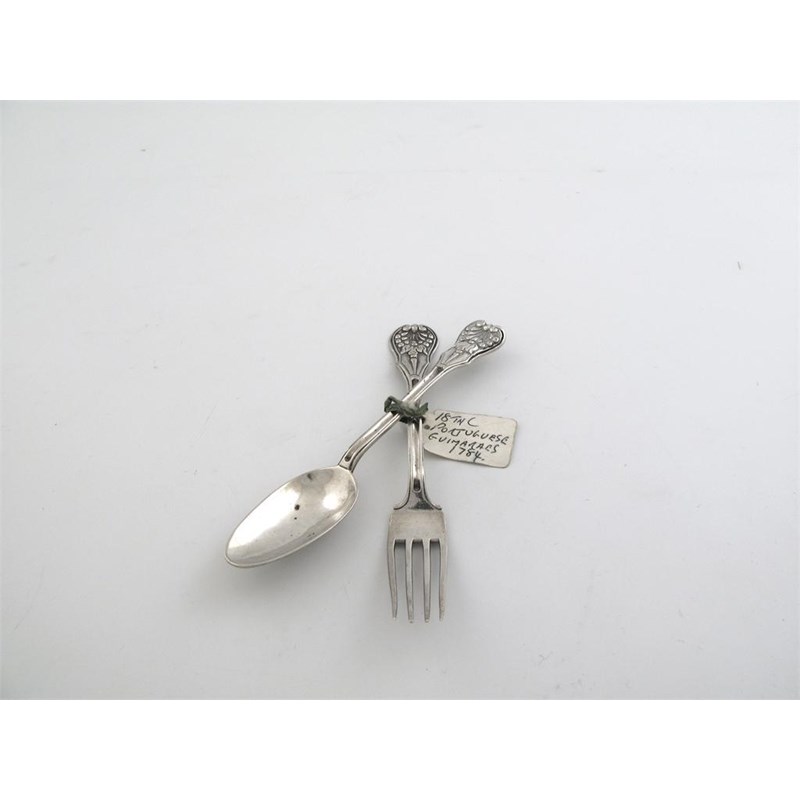 Portugese. A dessert spoon and fork, shell and fruit finials, Guimaraes, 1784 (2)