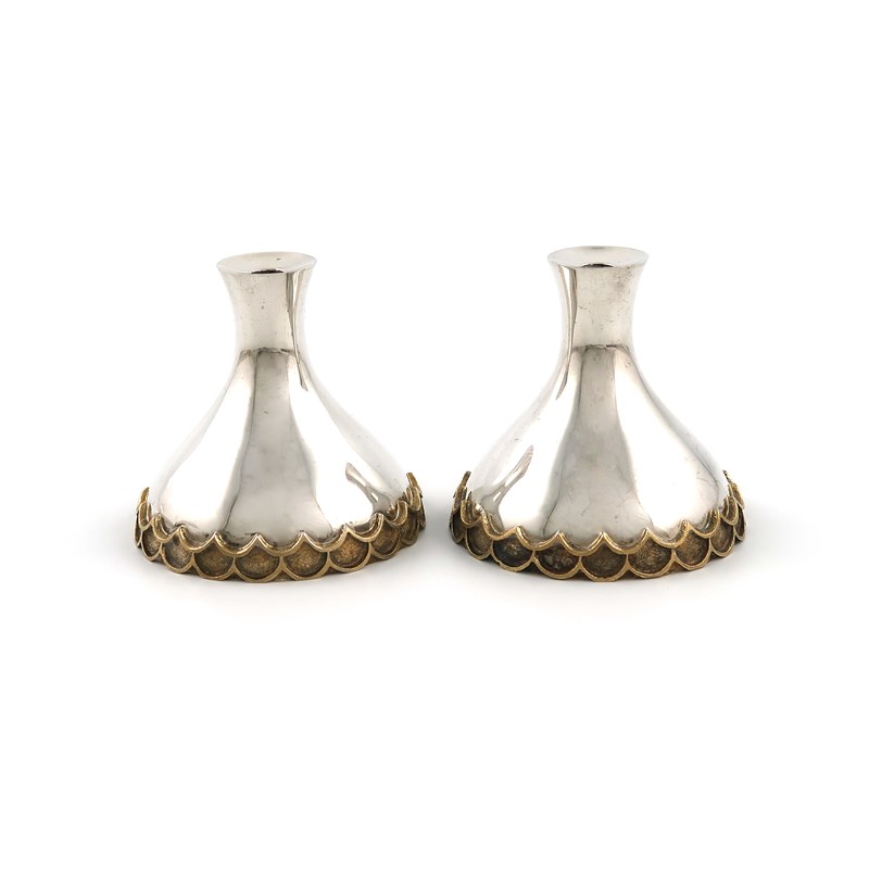 By Grant MacDonald, a pair of modern parcel-gilt silver candlesticks,