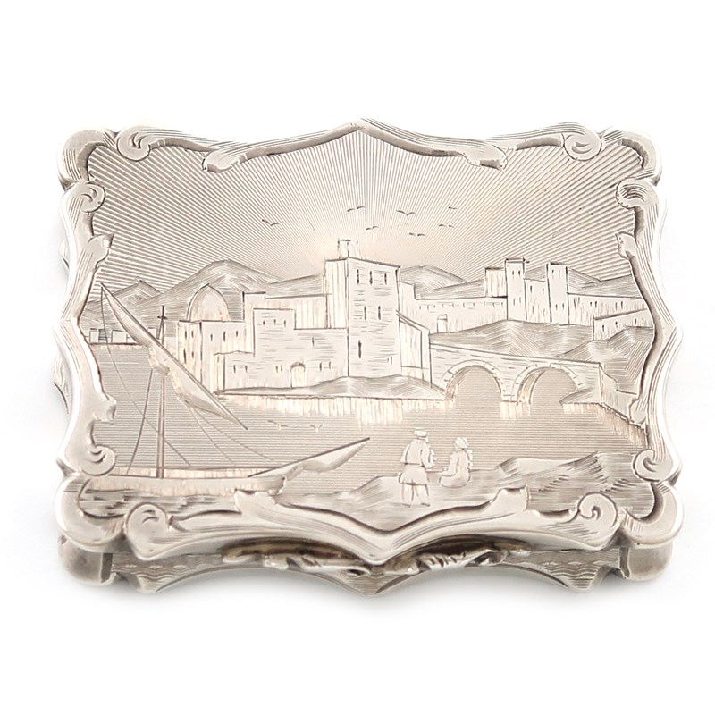 A Victorian silver engraved 'castle-top' vinaigrette, the Port of Beirut,