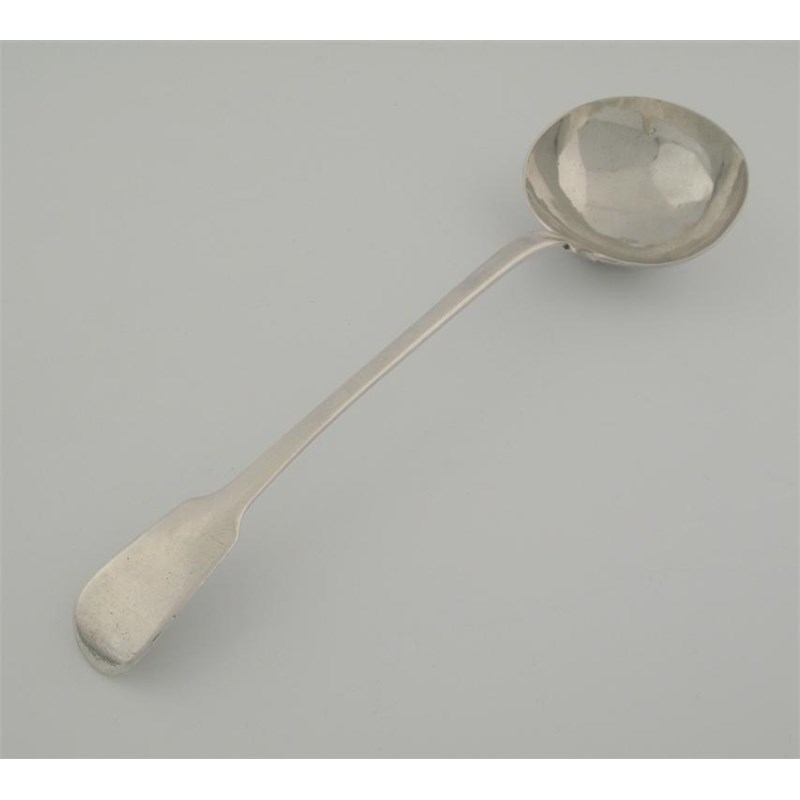 A 19th century Colonial fiddle pattern soup ladle maker's mark 'FW' and pseudo marks, unascribed mid 19th century, 7.5oz.