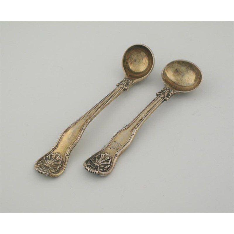 Kings Husk: a Victorian silvergilt salt spoon, crested, and a Victorian silvergilt mustard spoon, crested, both by George Adams, London, 1842 and 1848 respectively, 2.3oz. (2)
