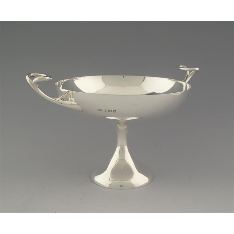 A modern pedestal tazza with a shallow circular bowl and short loop handles by Horace Woodward & Co., London 1912, 6.75in (17.2cm) high, 20oz.