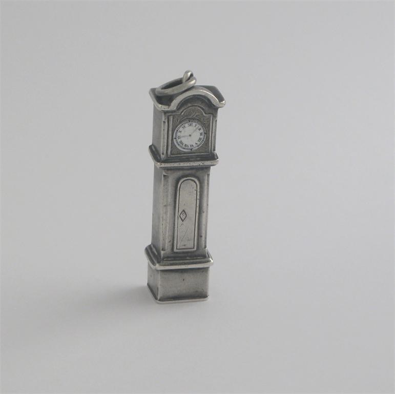 A rare, late Victorian novelty telescopic pencil, in the form of a longcase clock with enamelled dial, by S. Mordan & Co. 1.5in (4.5cm) long.