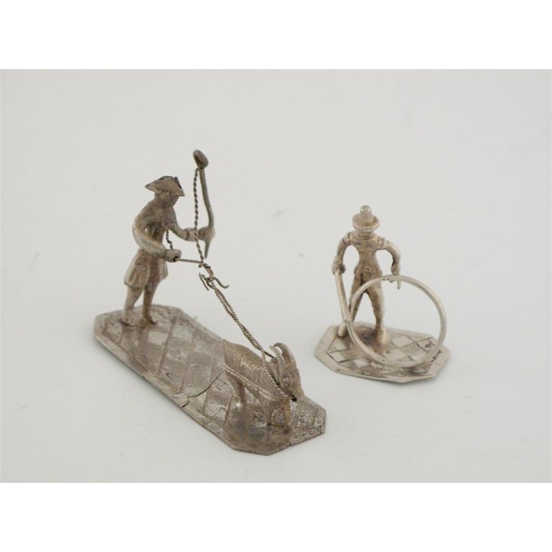 A farmer in a tricorn hat, with tethered goat and a boy playing hoopla. (2)