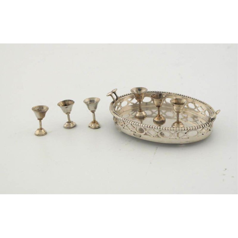An oval tray, pierced gallery and bead edge, and six goblets with flared bowls. (7)