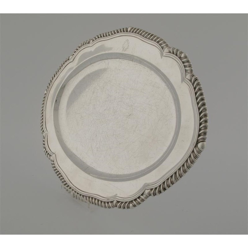 A Victorian oval meat plate with a gadrooned rim and an engraved, lozenge coat of arms, by Messrs Barnard, London 1850 (incuse No. 142), retailer's mark of 'A. B. Savory, Cornhill, London', 14.25in (36.2cm) long, 40.5oz.