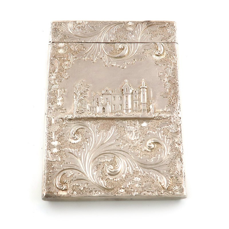 A William IV silver double-sided 'Castle-top' card case, Abbotsford House and Newstead Abbey,