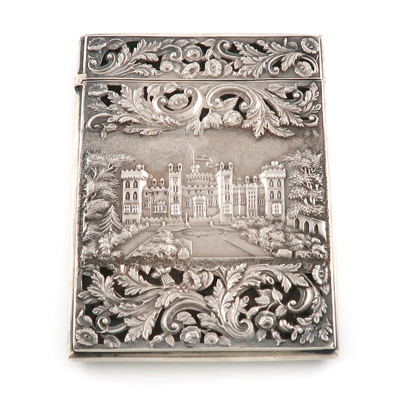 A Victorian silver double-sided 'Castle-top' card case, Windsor Castle and Kenilworth Castle,