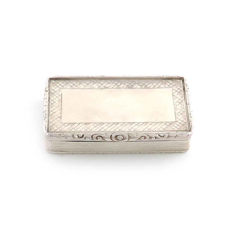 rectangular form, engraved cross-hatched decoration, reeded sides, length 7.5cm, approx. weight 2.5oz.