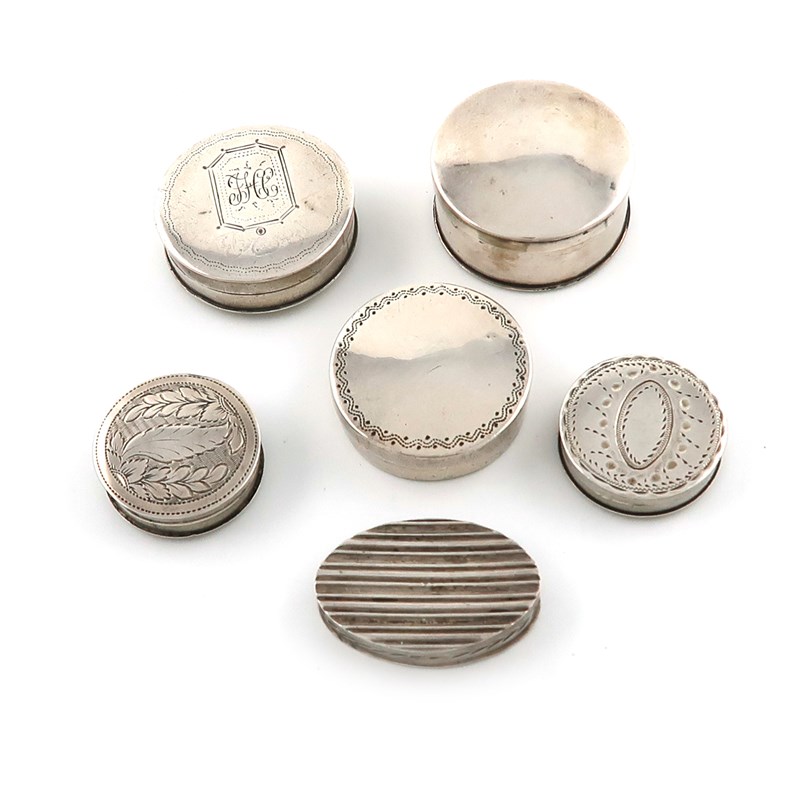 comprising: one by Roger Biggs, London 1792, one oval fluted and four of circular form, approx. weight 1.2oz. (6)