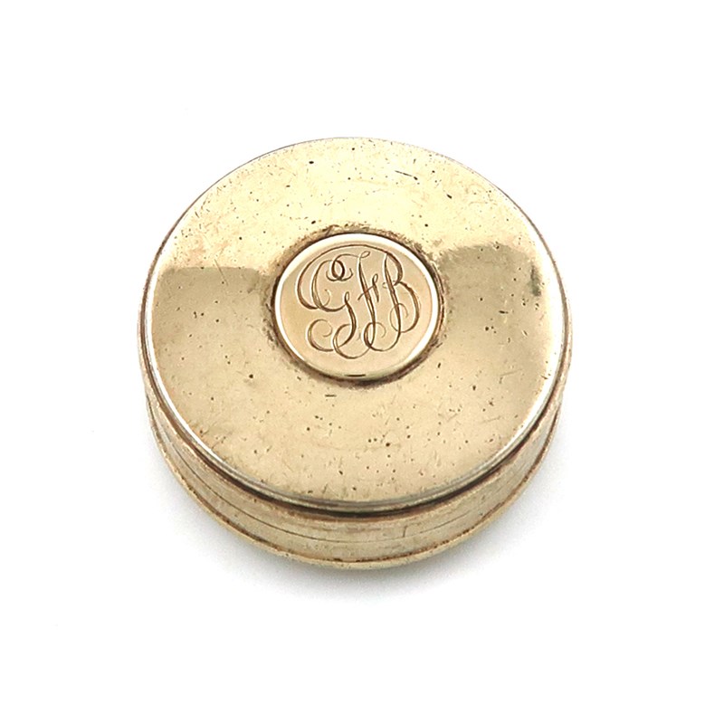 circular form, the hinged cover initialled, the interior with a pierced and engraved foliate grille, diameter 2.9cm, approx. weight 0.6oz.