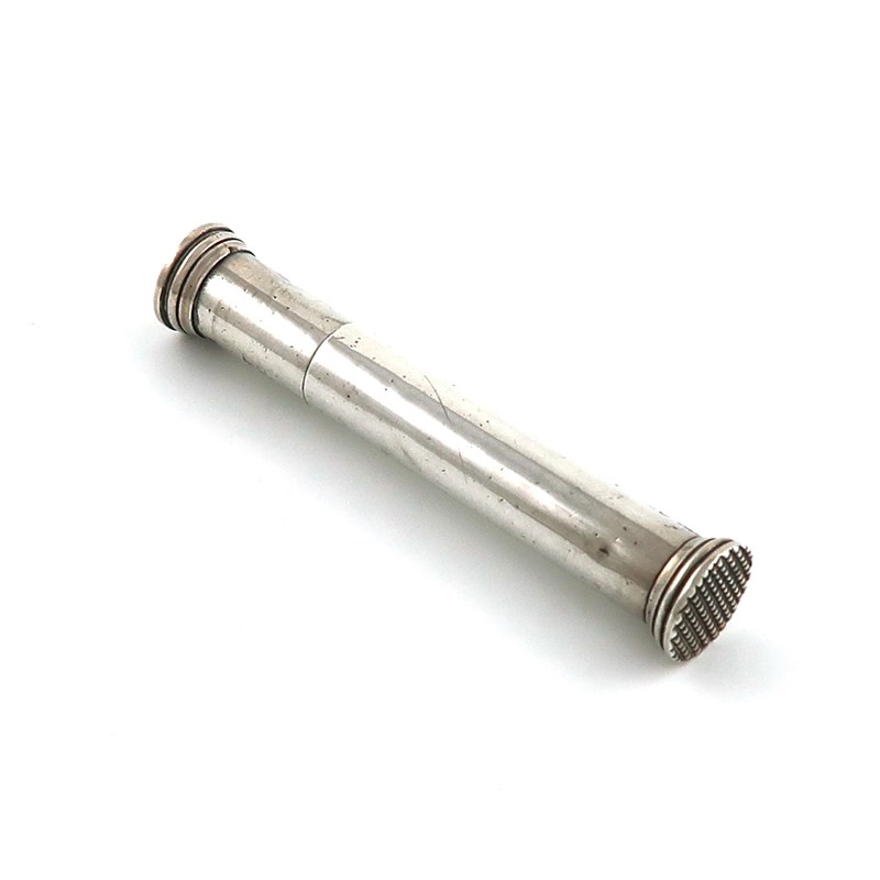 plain cylindrical form, pull-off cover, the matrix engraved with a crest, length 9cm, approx. weight 1oz.