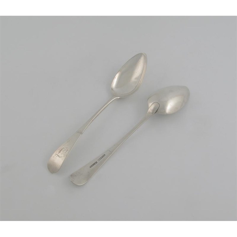 A pair of George III Irish provincial Old English tablespoons, initialled 'F', by John Toleken (TOLEKEN, STERLING), Cork c.1810, 3.7oz. (2)