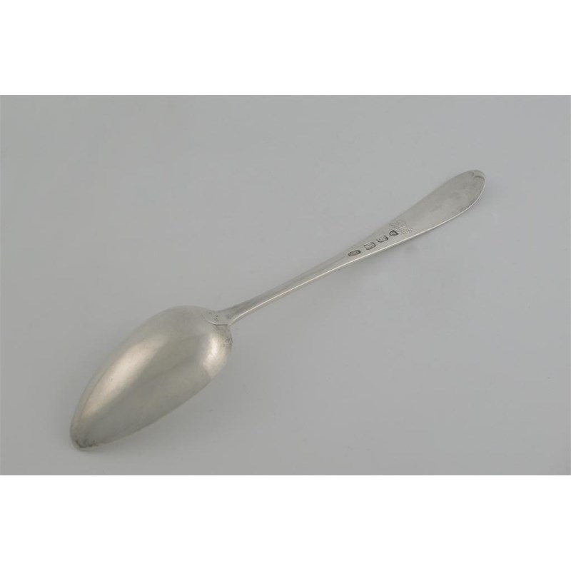 A George III Irish Old English star pattern basting spoon, bright-cut, with a pointed-end, crested, initialled 'S' over 'SH' on the heel, and 'IIH' on the stem, by Law & Bayly, Dublin 1795, 2.7oz.