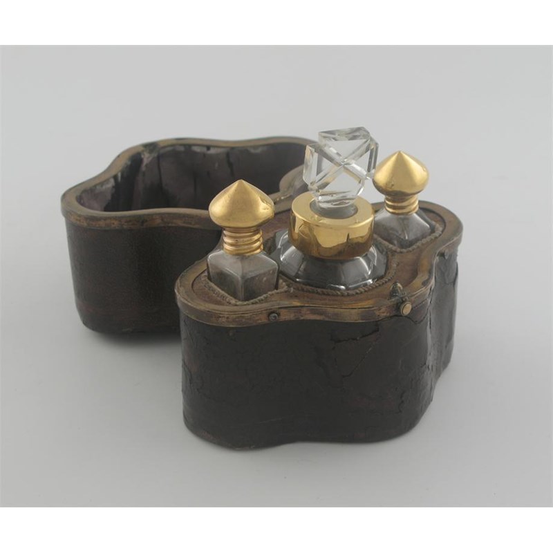 A brass mounted leather necessaire a parfum