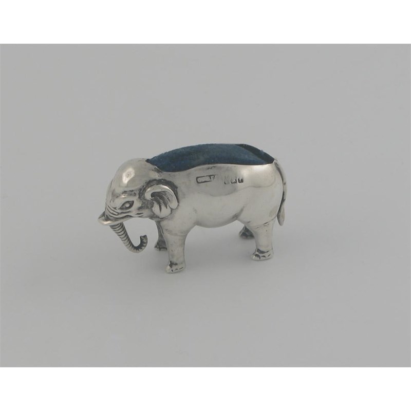 An Edwardian novelty pincushion, in the form of a standing elephant, by Saunders & Shepherd, Birmingham 1905, 1.8in (4.8cm) long.