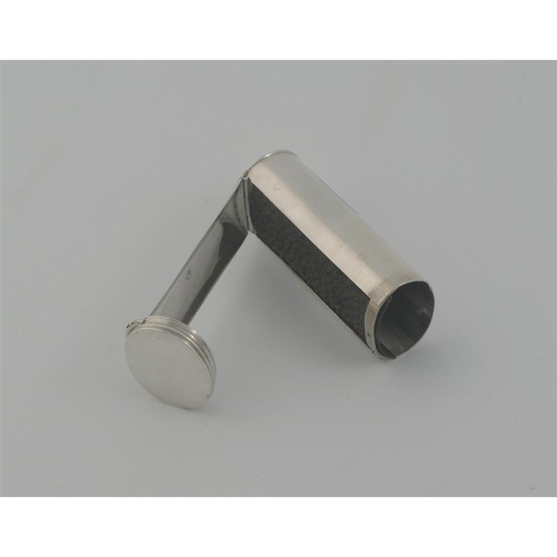 A George III tubular oval nutmeg grater, with a hinged cover and a hinged side, revealing a steel grate by T. Phipps & E. Robinson, London c.1818, 2.45in (6cm) long, 1.5oz