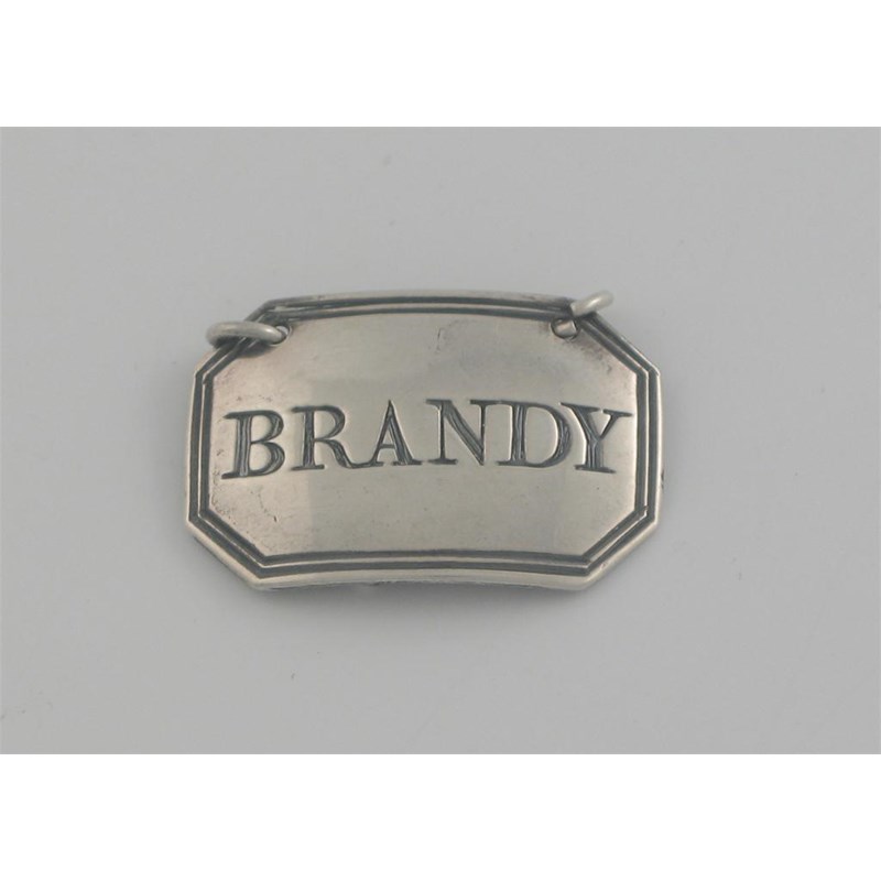 A George III oblong wine label, with a canted, reeded border, inscribed 'BRANDY', maker's mark of Thomas Ollivant of Manchester, over striking that of Peter & Ann Bateman, London 1795.