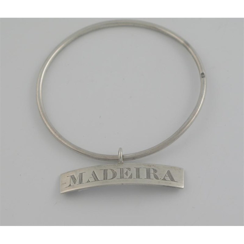 An early Victorian neck ring label, with a pendant oblong title, inscribed 'MADEIRA', by Sebastian Gespell (II), London 1839.