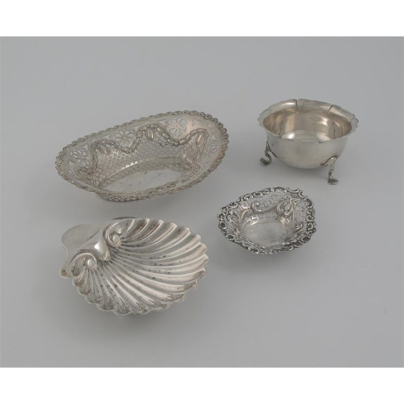 Two bon bon dishes, a sugar bowl and a butter shell, various makers and dates, 9oz.