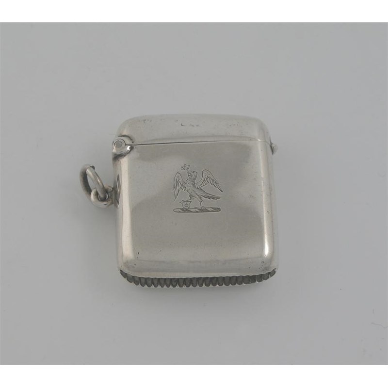 A modern, plain oblong vesta case, crested, gilt interior, Birmingham 1910, 0.5oz.