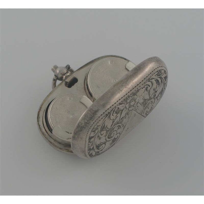 A modern double sovereign case, with engraved decoration, triangular vacant cartouche, two sprung holders inside to take full and half sovereigns, by T. Heatley, Birmingham 1911, 2in (5.1cm) long.