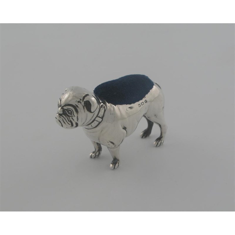 An Edwardian novelty bulldog pin cushion, standing, by Adie & Lovekin Ltd., Birmingham 1905, 2.7in (6.6cm) long.