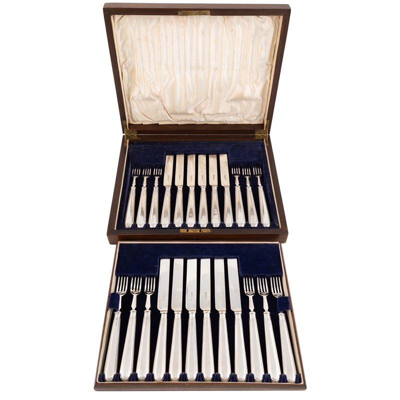 A set of twelve silver fruit knives and forks,